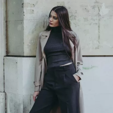 Un punto atemporal y refinado en colores gris, negro y rojo, imprescindible en tu armario.
